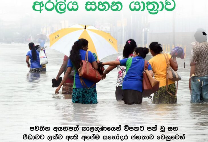 පවතින අයහපත් කාලගුණික තත්ත්වය හේතුවෙන් දිවයිනේ ප්රදේශ රැසක ජනතාව දැඩි පීඩාවට පත්ව සිටින මොහොතක, ඔවුන්ගේ කුසගින්න නිවීමට සහ සහන සැලසීමට අරලිය සමූහ ව්යාපාරය සියලු වාණිජ මෙහෙයුම් පසෙකලා මානුෂීය මෙහෙයුමකට අවතීර්ණ වී සිටියි.